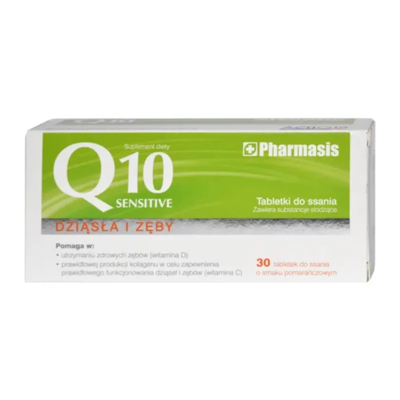 Sensilab Q10 Sensitive to suplement diety w postaci tabletek do ssania o smaku pomarańczowym. Produkt w swoim składzie zawiera składniki wspierające zdrowie zębów i dziąseł. Produkt opracowany dla osób dorosłych.