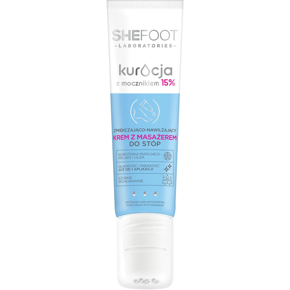 Shefoot to produkt kosmetyczny, który zawiera 15% mocznika. Przeznaczony jest do pielęgnacji stóp, zmiękcza i wygładza skórę. W zestawie znajduje się masażer, który ułatwia aplikację kremu. Produkt polecany jest do codziennego stosowania w celu poprawy kondycji stóp. Idealnie nadaje się do pielęgnacji suchej i szorstkiej skóry.Składniki/Ingredients