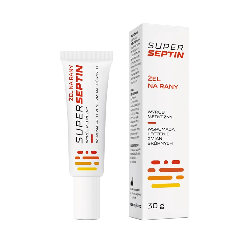 Superseptin żel na rany to wyrób medyczny stosowany miejscowo na skórę, który wspiera regenerację uszkodzonych tkanek. Działa ochronnie i nawilżająco, przyspieszając gojenie otarć, skaleczeń, oparzeń oraz innych drobnych uszkodzeń skóry.