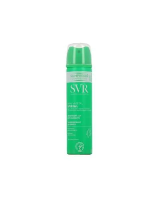 SVR SPIRIAL SPRAY VEGETAL Dezodorant antyperspirant 24h - produkt kosmetyczny opracowany celem redukcji nieprzyjemnego zapachu potu. Odpowiedni dla wszystkich rodzajów skóry, nawet tej najbardziej wrażliwej, po goleniu lub depilacji. Do stosowania na skórę pod pachami, na dłonie i stopy.Składniki/Ingredients