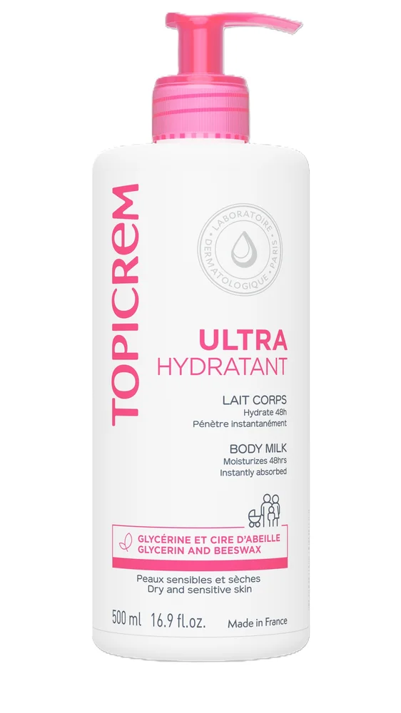 Topicrem, Ultra-Moisturizing Body Milk to produkt kosmetyczny, który nawilża i regeneruje skórę. Formuła mleczka jest przeznaczona do pielęgnacji suchej i wrażliwej skóry. Zawiera składniki, które pomagają utrzymać odpowiedni poziom nawilżenia oraz zapewniają gładkość. Produkt jest odpowiedni dla dorosłych oraz dzieci. Aplikować na skórę w miarę potrzeb.Składniki/Ingredients