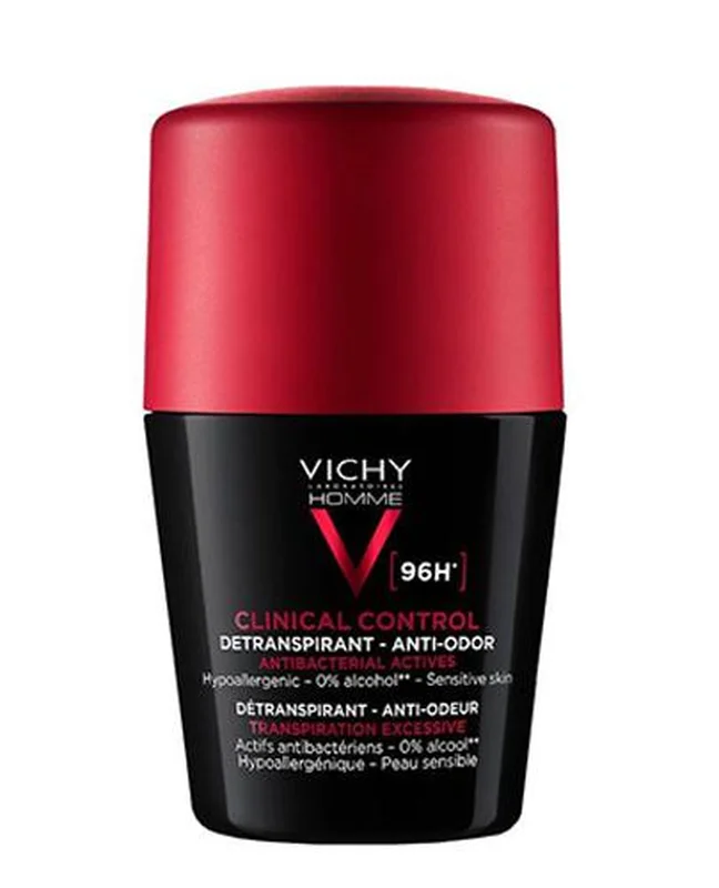 Dezodorant Vichy Homme Clinical Control roll-on 96h to antyperspirant dla mężczyzn przeznaczony do codziennego stosowania w celu zapewnieniu skutecznej ochrony przed potem i przykrym zapachem nawet przez 96 godzin. Produkt może być stosowany do każdego typu skóry, w tym wrażliwej i skłonnej do podrażnień.Właściwości produktu