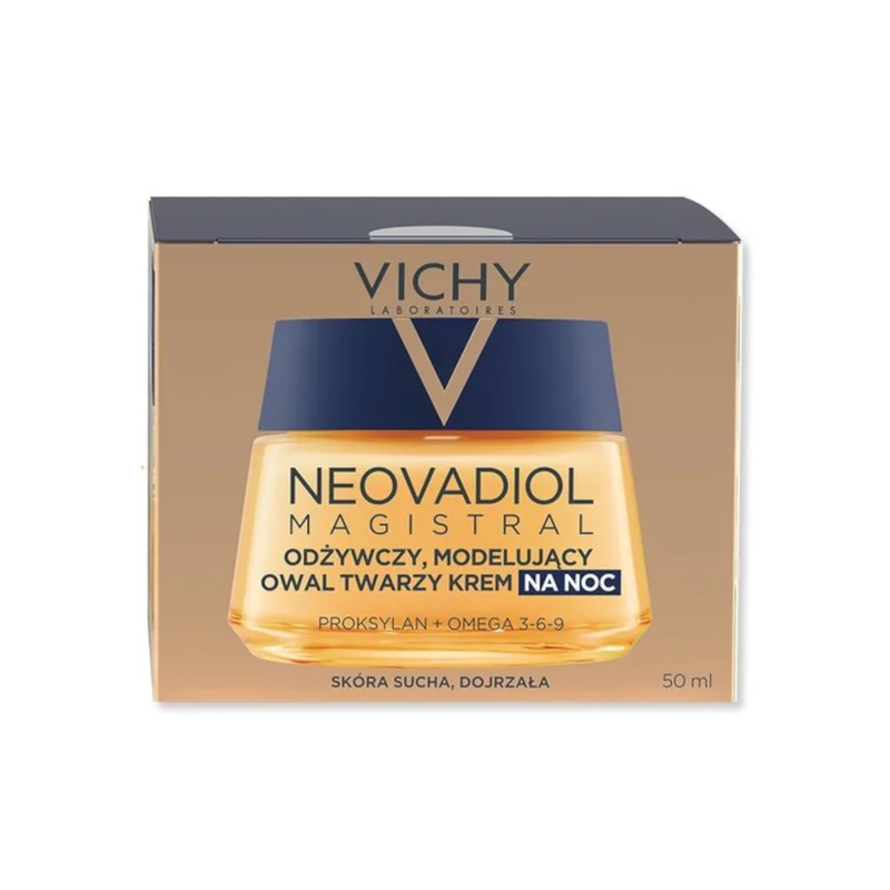 Vichy Neovadiol Magistral, odżywczy, modelujący owal twarzy krem na noc to produkt kosmetyczny stworzony z myślą o skórze kobiet w okresie pomenopauzalnym – wymagającej intensywnej regeneracji, komfortu oraz odbudowy. Jego zaawansowana formuła wspiera skórę podczas nocnego cyklu odnowy, kiedy naturalna regeneracja zachodzi najintensywniej.