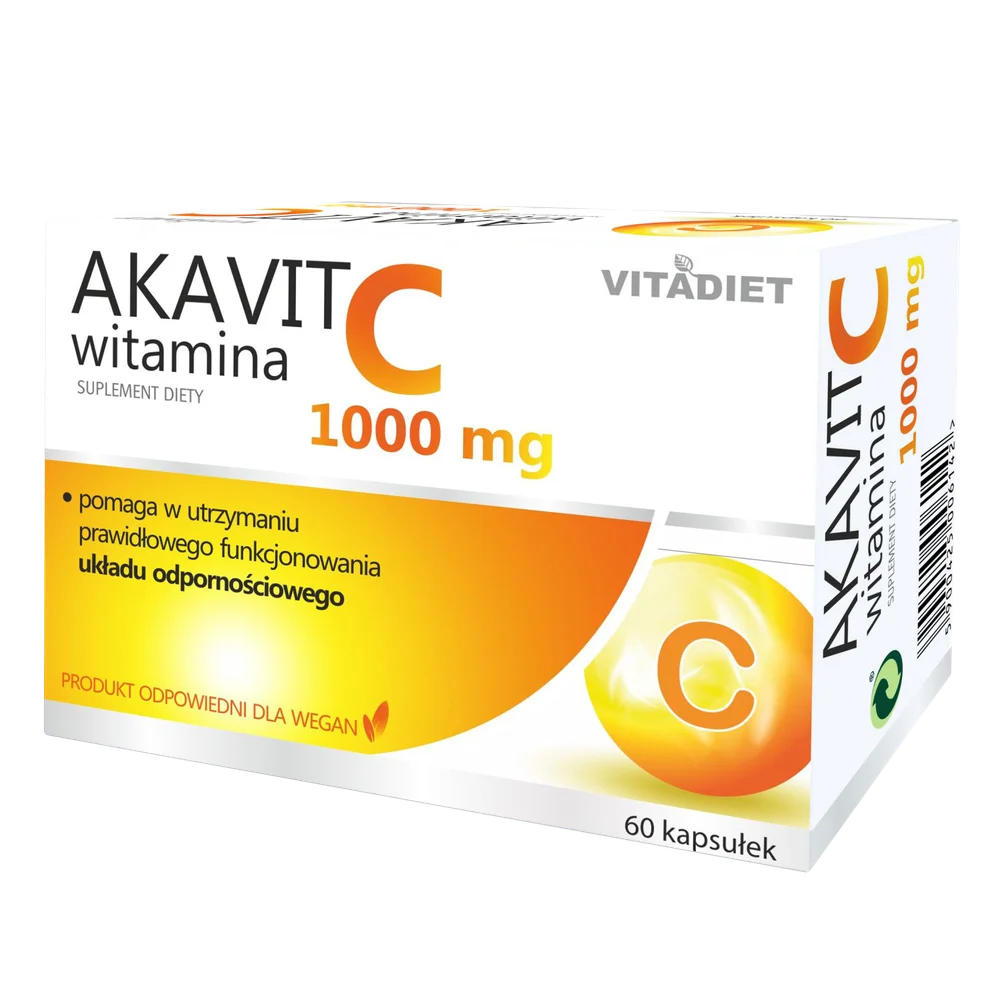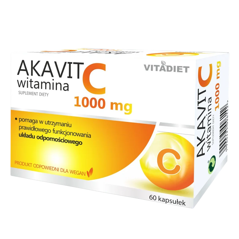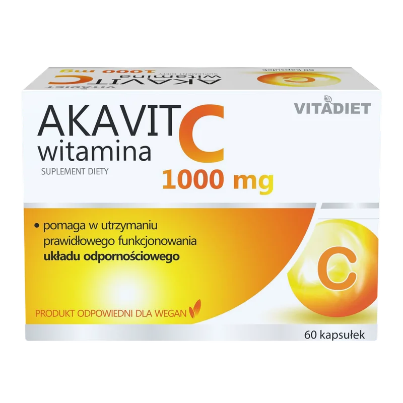 Vitadiet Akavit, Witamina C 1000 mg to suplement diety w kapsułkach, którego składniki pomagają wzmacniać odporność i wspierają dobre samopoczucie. Produkt odpowiedni dla osób dorosłych.
