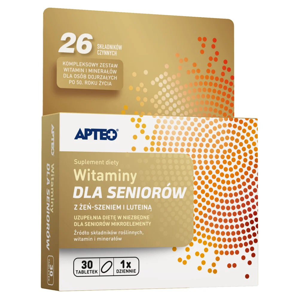 Witaminy dla seniorów Apteo to suplement diety, zawierające składniki wspierające prawidłowe funkcjonowanie organizmu osób starszych.