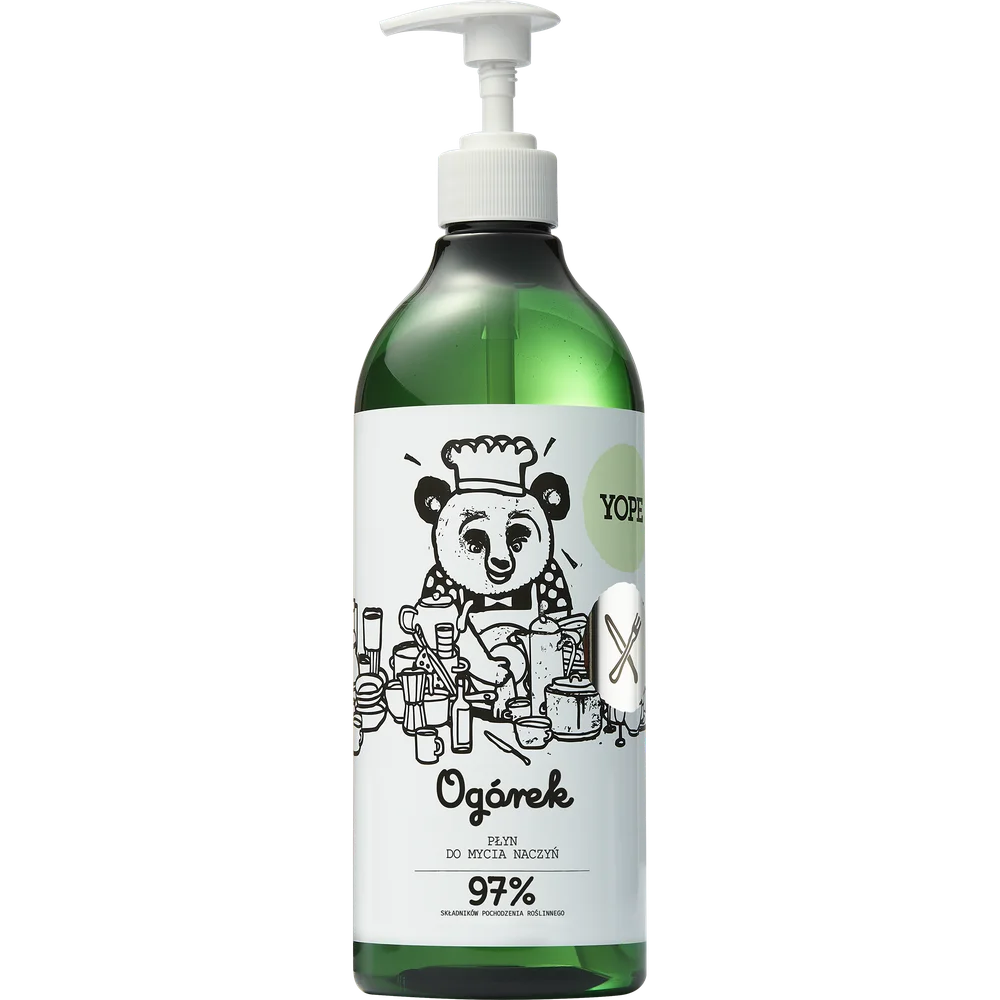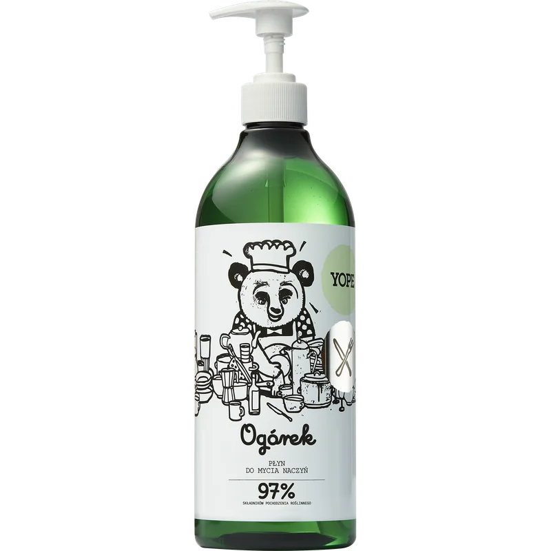 Yope Płyn do naczyń mięta ogórek to środek czyszczący przeznaczony do mycia naczyń. Produkt zawiera składniki pochodzenia naturalnego i charakteryzuje się świeżym zapachem mięty oraz orzeźwiającym aromatem ogórka. Nadaje się do mycia różnych rodzajów naczyń, skutecznie usuwając zanieczyszczenia. Po użyciu może pozostawiać przyjemny zapach. Płyn do naczyń jest odpowiedni do codziennego użytku w kuchni.Składniki/Ingredients