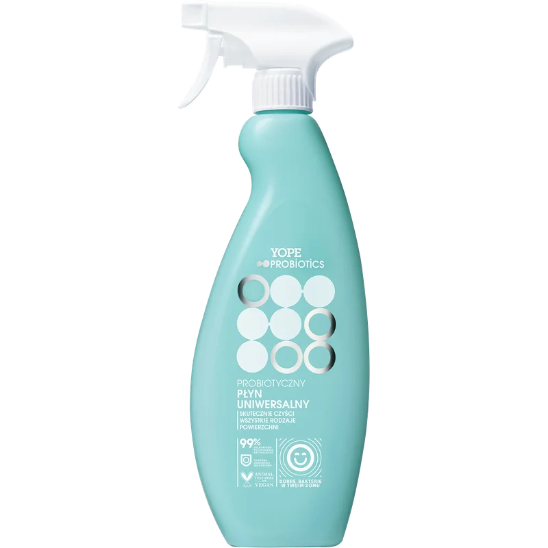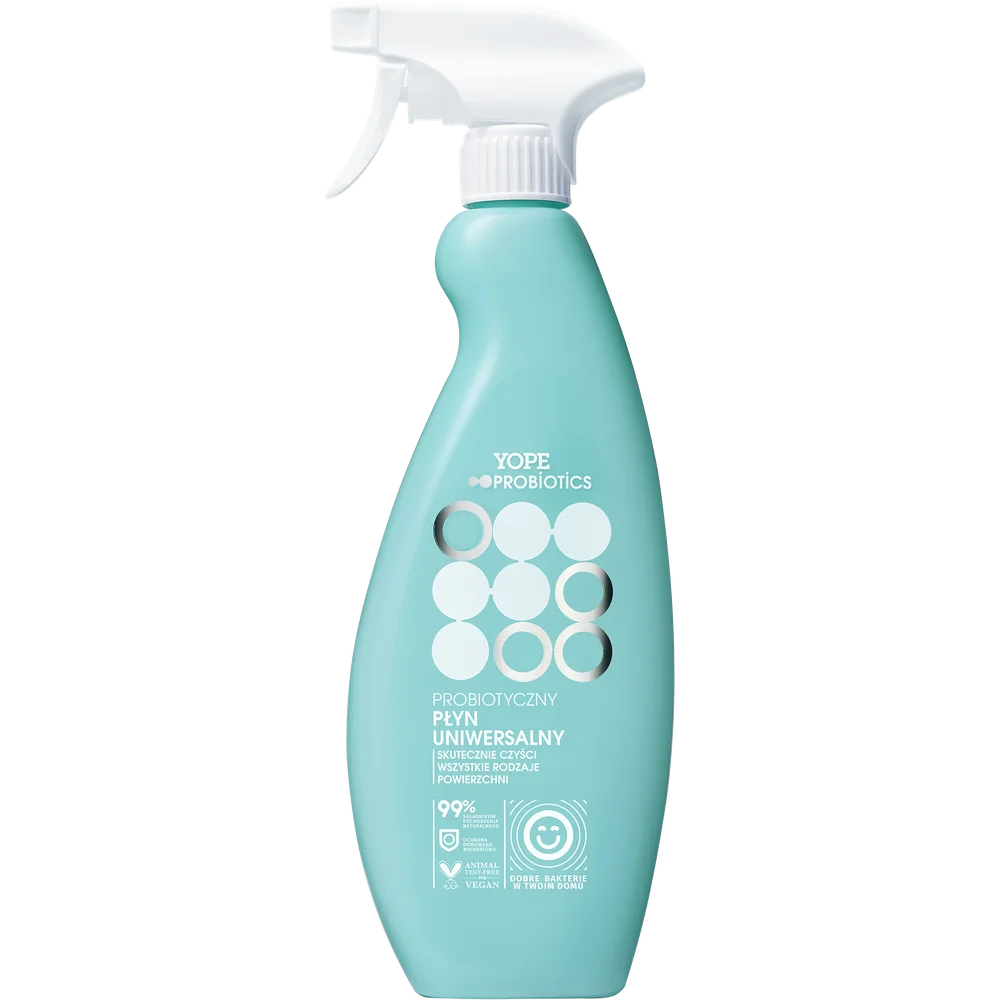 Yope Probiotics Płyn uniwersalny to środek czyszczący, który można stosować na różnorodnych powierzchniach w domu. Zawiera probiotyki, które wspierają naturalną florę mikrobiologiczną. Produkt ma neutralne pH, co czyni go odpowiednim do użytku w różnych miejscach, takich jak kuchnia czy łazienka. Umożliwia skuteczne usuwanie zabrudzeń, nie pozostawiając smug. Można go wykorzystać do czyszczenia podłóg, mebli oraz sprzętów. Stosowanie płynu zapewnia efektywne i komfortowe sprzątanie.Składniki/Ingredients