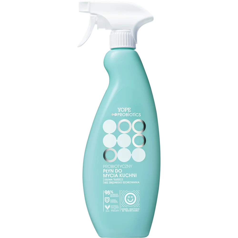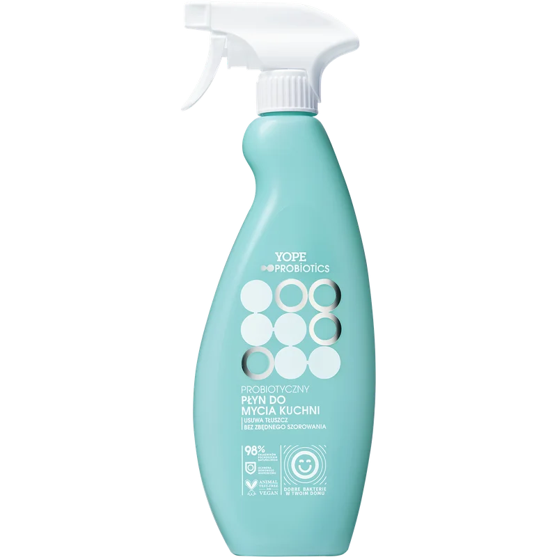 Yope Probiotyczny Płyn do kuchni to produkt stworzony z myślą o codziennym czyszczeniu kuchni – miejsc, które wymagają nie tylko higieny, ale i bezpieczeństwa. Idealnie sprawdzi się na blatach, kuchenkach, płytkach, zlewach, szafkach i sprzętach AGD, pozostawiając po sobie świeżość i naturalną czystość.