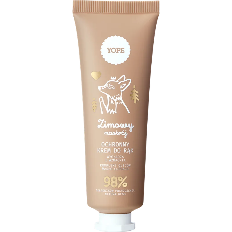 Yope Zimowy Nastrój Krem do rąk to produkt kosmetyczny stworzony z myślą o dłoniach, które zimą potrzebują szczególnej troski – idealny dla skóry suchej, podrażnionej, narażonej na działanie niskich temperatur i wiatru. Świetnie sprawdzi się zarówno w domu, jak i w podróży – mieści się w każdej torebce.
