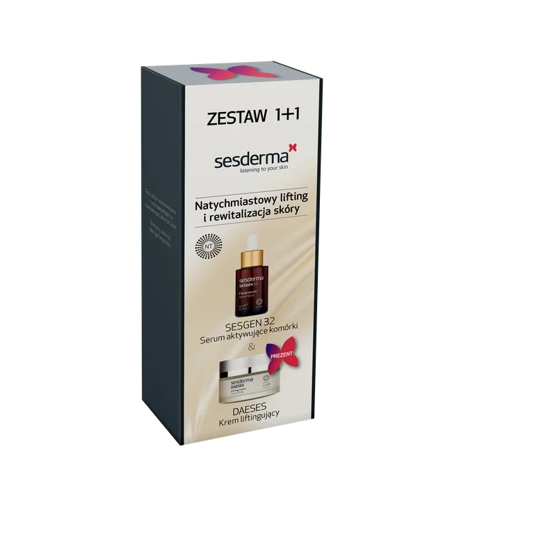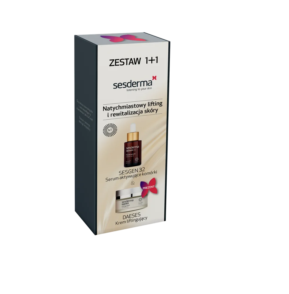 SESGEN 32 Serum: Nanieś niewielką ilość serum na oczyszczoną skórę, 1–2 razy dziennie, delikatnie wmasować. Unikać kontaktu z oczami (3–5 mm odstępu). DAESES Krem Liftingujący: Stosuj po serum, delikatnie wmasować do wchłonięcia, rano i wieczorem.Informacje o bezpieczeństwie